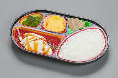 食べ物を噛むことや、飲み込むことが困難な方に適した、やわらかいお弁当です。見た目の美味しさや料理の香りも兼ね備えているので、美味しい食事を安心してお召し上がり頂ける新しい食事形態です。